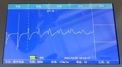 1.使用測距儀低壓脈沖測量,得到有效波形全長314.5米。如圖所示