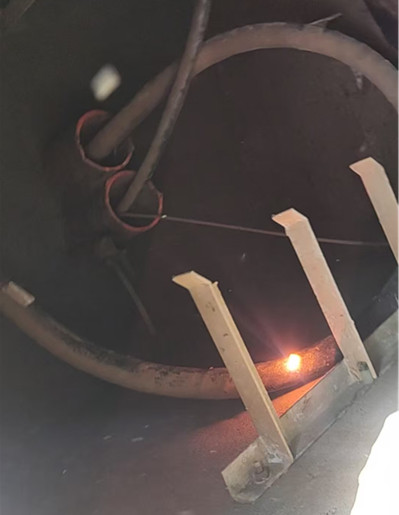 3.確定故障點大約位置后,繼續(xù)用高壓發(fā)生器4秒周期放電,確定具體位置在電纜井內(nèi)